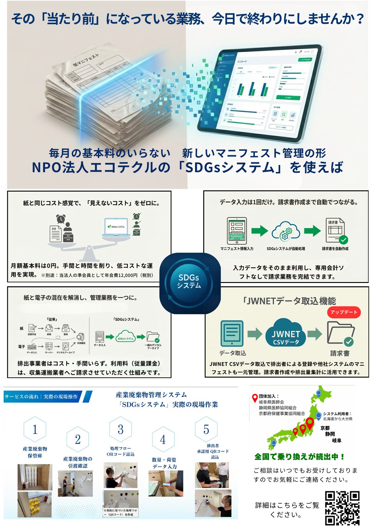 QRコードで排出登録(電子マニフェスト作成)できるSDGs12システムで業務効率化しませんか?只今無料キャンペーン実施中! 詳しくはクリック!!